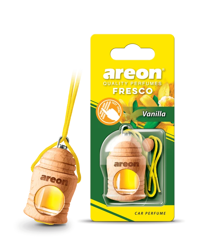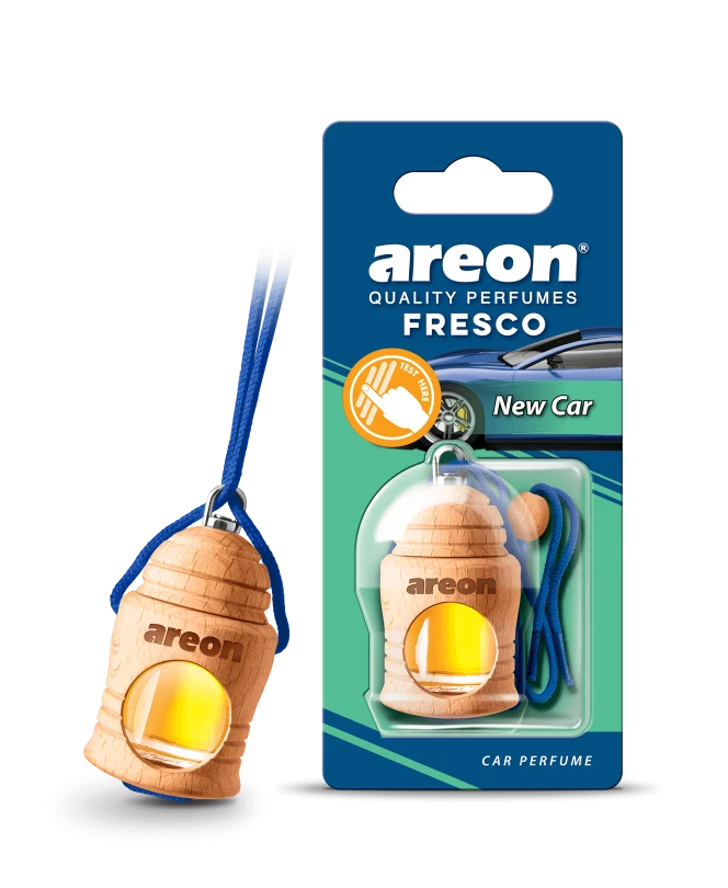 Areon Fresco es un ambientador líquido en elegante botellita de vidrio con tapa de madera. Diseñado para colgar en el retrovisor, ofrece una experiencia aromática refinada y duradera, ideal para autos, oficinas o espacios pequeños.